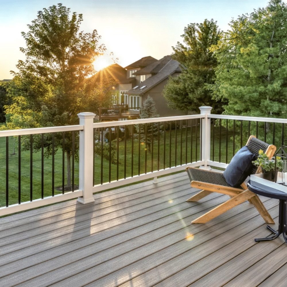 Enjoy a low-maintenance and eco-friendly outdoor space with our composite decking and matching railings, designed for durability and a cohesive, modern appearance.